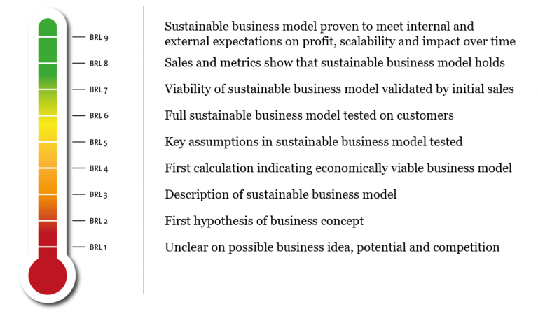 Business Model Readiness Level – BRL – establish that the concept can be financially, environmentally, and socially viable and feasible