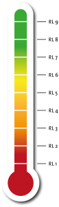 Each individual Readiness Level comes with a number of resources and visual aides. A nine grade scale is used to map the current status of the idea to the overall development phase. This scale is visualised using a thermometer style tool with a number of milestones to reach before the next level is achieved.